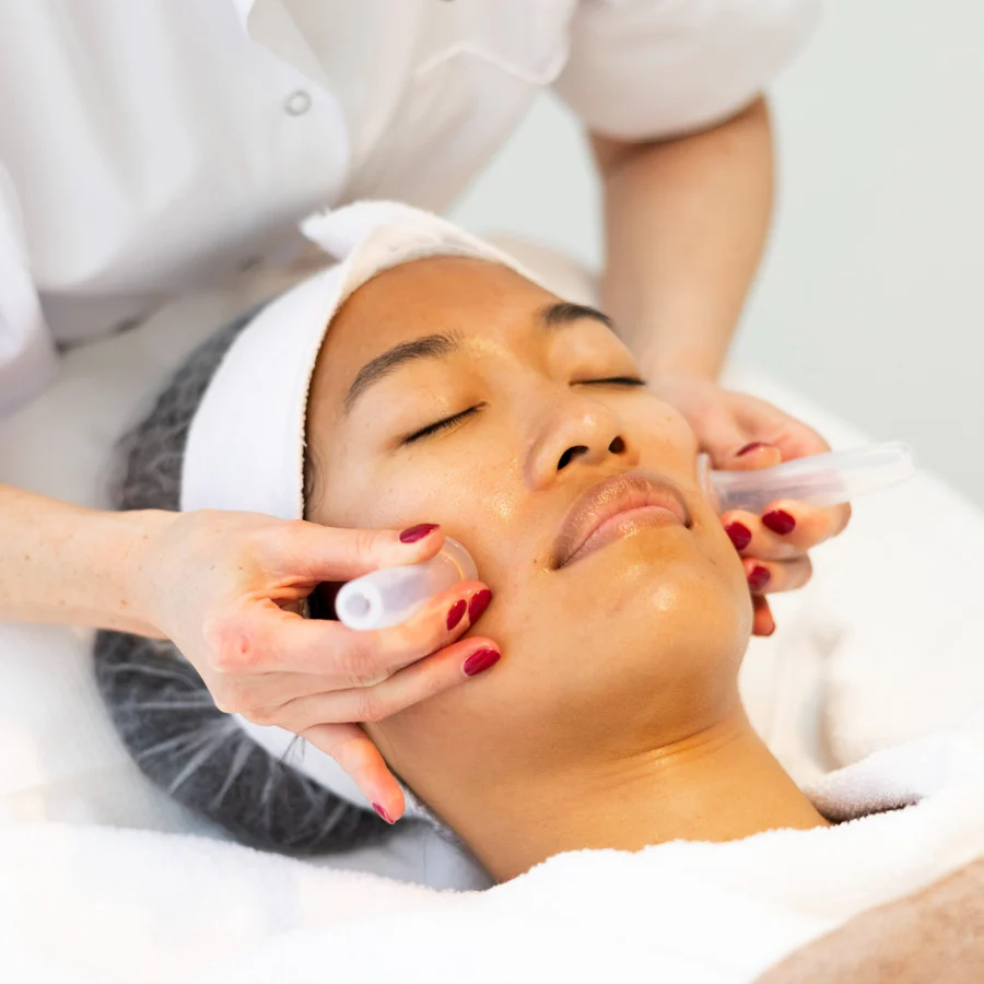 Een unieke facial waarbij cupping wordt gecombineerd met bindweefselmassage voor extra intensiteit. Deze techniek zorgt voor een krachtige stimulatie van de huidstofwisseling en een direct zichtbaar resultaat.